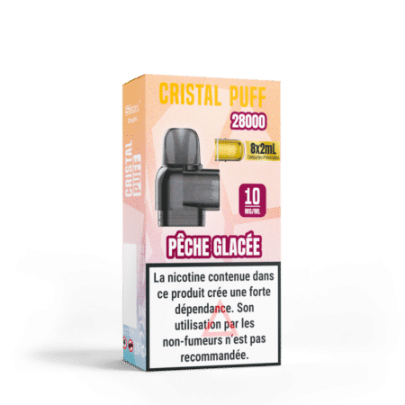 Cartouche Cristal Puff 28K (x8) – Nicotine : 20mg, Saveur : Pêche Glacée