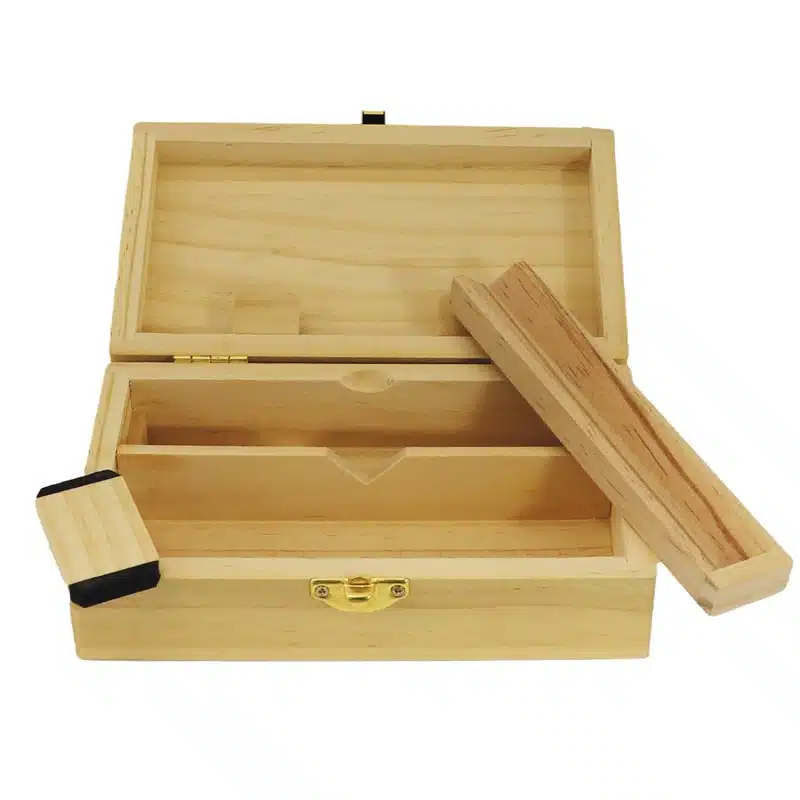 La Spliff Box est une boîte en bois astucieuse qui vous permet d’organiser et transporter tout votre matériel avec style et discrétion. Avec ses compartiments dédiés et son emplacement en « V » pour rouler facilement, elle est idéale pour un usage quotidien.